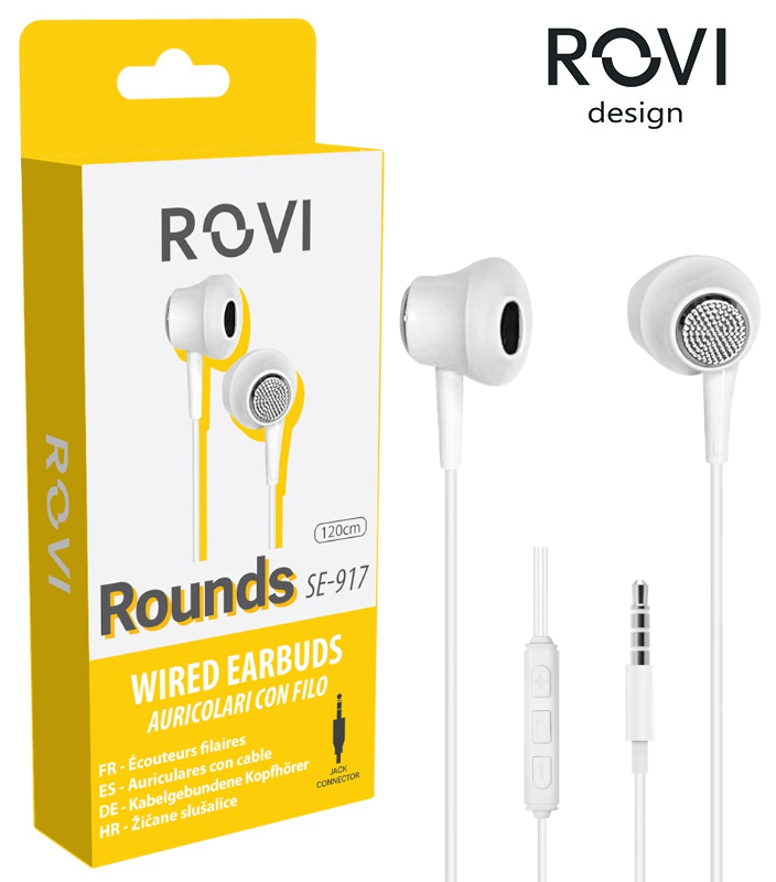 Auricolari cuffie rounds se917 1pz jack 3,5mm bianco blister - rovi