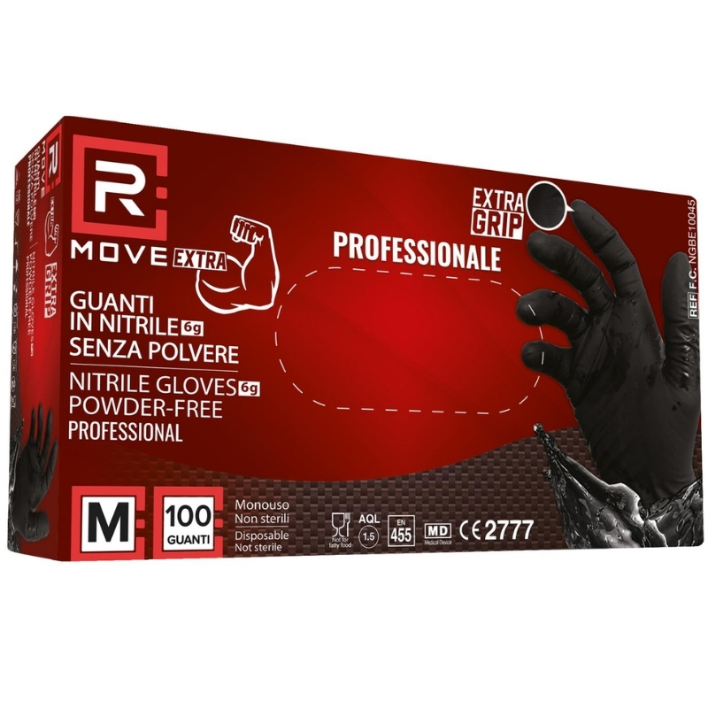 Guanti nitrile nero 6gr tg.m medio 100pz spessore da lavoro