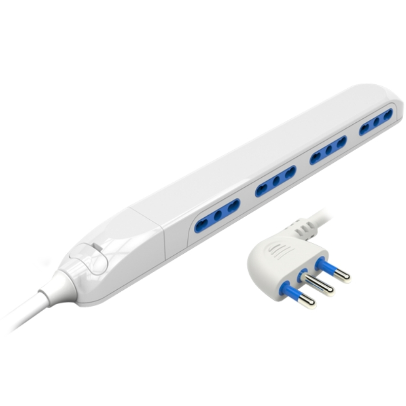 Multipresa Slim Salvaspazio 4 Biprese – Spina 10 A Ang,90 – Bianco.