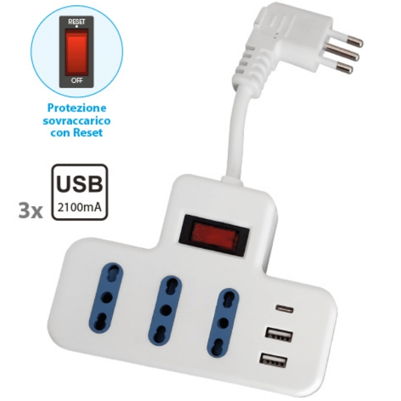 Multipresa ciabatta da tavolo 3 pr. bipresa 3usb 2,1a novaline