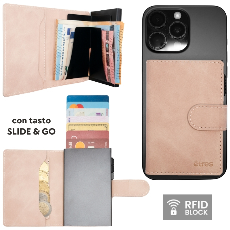 Etres Smart Wallet Slide Portacarte in Metallo Pink Magsafe.