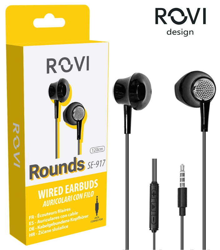Auricolari cuffie rounds se917 1pz jack 3,5mm nero blister - rovi