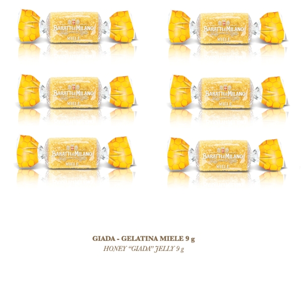 Esplora il gusto delle celebri caramelle gelèe Giada Baratti & Milano, nella sua ricetta con ripieno al gusto naturale di Miele. Queste deliziose caramelle offrono un sapore caldo, avvolgente e rilassante, catturando l'essenza unica del miele, armoniosamente sposato con la tradizione confettiera di Baratti & Milano. Perfette da gustare da sole o in condivisione con gli ospiti, le Caramelle Giada al Gusto Miele completano con gusto ed eleganza la tua fornitura di dolciumi.