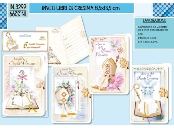 Biglietti cromo cresima inviti 9x14cm - 6pz prestampati