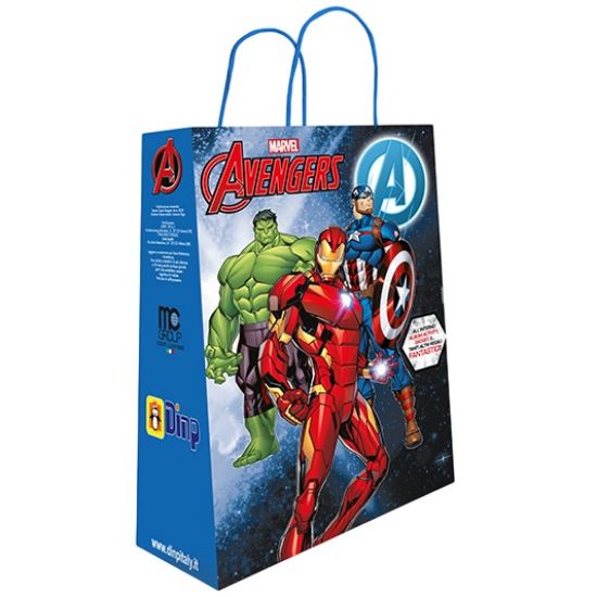 Gli eroi più potenti della Terra, tra cui Iron Man, Thor, Capitan America, Hulk e tanti altri, decisero di formare un’alleanza per la lotta contro il crimine chiamata “Avengers”. Gioca con la Shopper Sorpresa Avengers in cui potrai trovare l’album activity, il binocolo, la macchina fotografica, la molla, il lancia e cattura palla, la trottola, il pen top e molto altro!