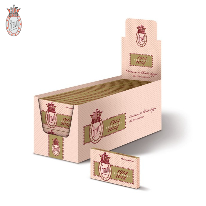 Bravo Rex corte doppie sono cartine corte di tipo A con un peso di 23,0 g/m² a densità elevata e combustione veloce. La grammatura pesante della carta conferisce alla fumata un sapore caratteristico e soddisfacente. Queste cartine sono tra le più vendute ed utilizzate in Italia. Prodotto vendibile solo a Tabaccherie e distributori autorizzati da A.D.M.