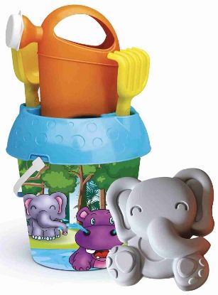 Secchiello per giocare con la sabbia e l’acqua. Set completo di 7 pezzi: secchiello, paletta, rastrello, passasabbia, innaffiatoio e formine assortite. Giocattolo realizzato in plastica 100% riciclabile, atossica, resistente al sole e all’acqua. Dimensioni: 36 cm Diametro secchiello: 22 cm