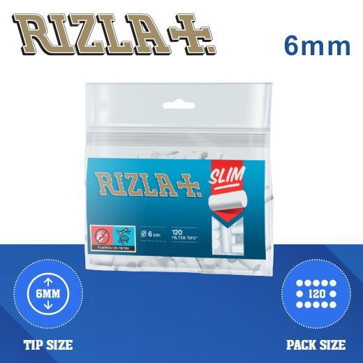 Rizla slim sono filtri non incartati, ruvidi, realizzati in acetato di cellulosa. Dotati di pratica bustina e richiudibile. Prodotto vendibile solo a Tabaccherie e distributori autorizzati da A.D.M.