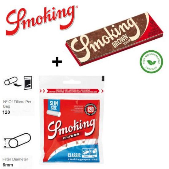 Smoking slim più cartine in bustina sono filtri compresi di un pacchetto di cartine brown; Questi filtri sono definiti slim perchè hanno un diametro di 6 mm. Prodotto vendibile solo a Tabaccherie e distributori autorizzati da A.D.M.