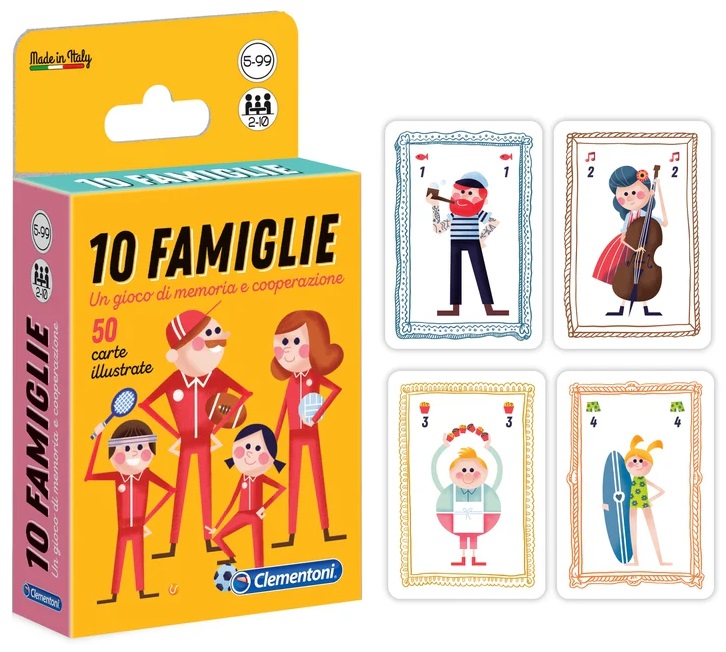 Il popolare gioco di memoria per bambini "Famiglie" si colora di una veste nuova, con 40 carte illustrate che rappresentano 10 simpatiche famiglie di animali tutte da riunire.