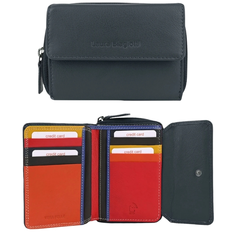 Portafoglio donna biagiotti blu 1pz vera pelle
