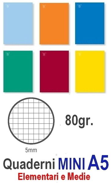 Quaderni mini tinta unita 5mm 80gr - 10pz 15x21 a5