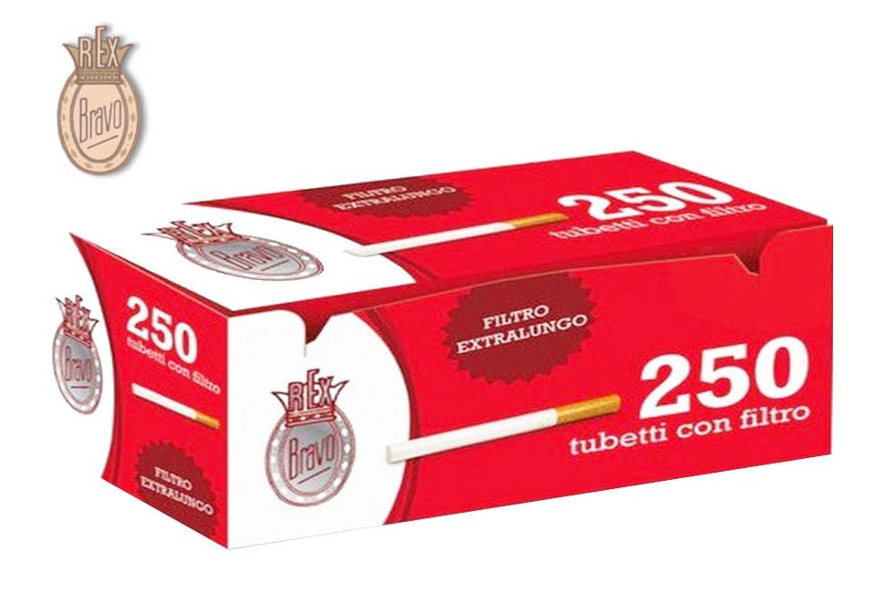 Bravo filtro extralungo sono tubetti vuoti per sigarette self made. Filtro 60% più lungo di quello di un normale tubetto, ben 25mm e area di riempimento tabacco ridotta del 10%. Diametro: 8mm Lunghezza Tubetto: 83mm Questi tubetti esteticamente sono esteticamente identici alle sigarette tradizionali; Tramite le macchinette riempi tubi, potrai riempire le sigarette vuote con il tabacco che preferisci. Prodotto vendibile solo a Tabaccherie e distributori autorizzati da A.D.M.