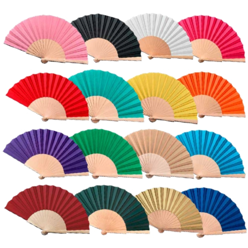 Ventaglio diam.42cm 12pz in tessuto e manico in legno naturale
