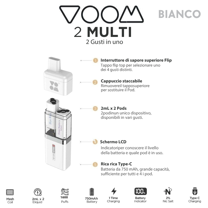 Voom device multi2 ricaricabile 1pz white